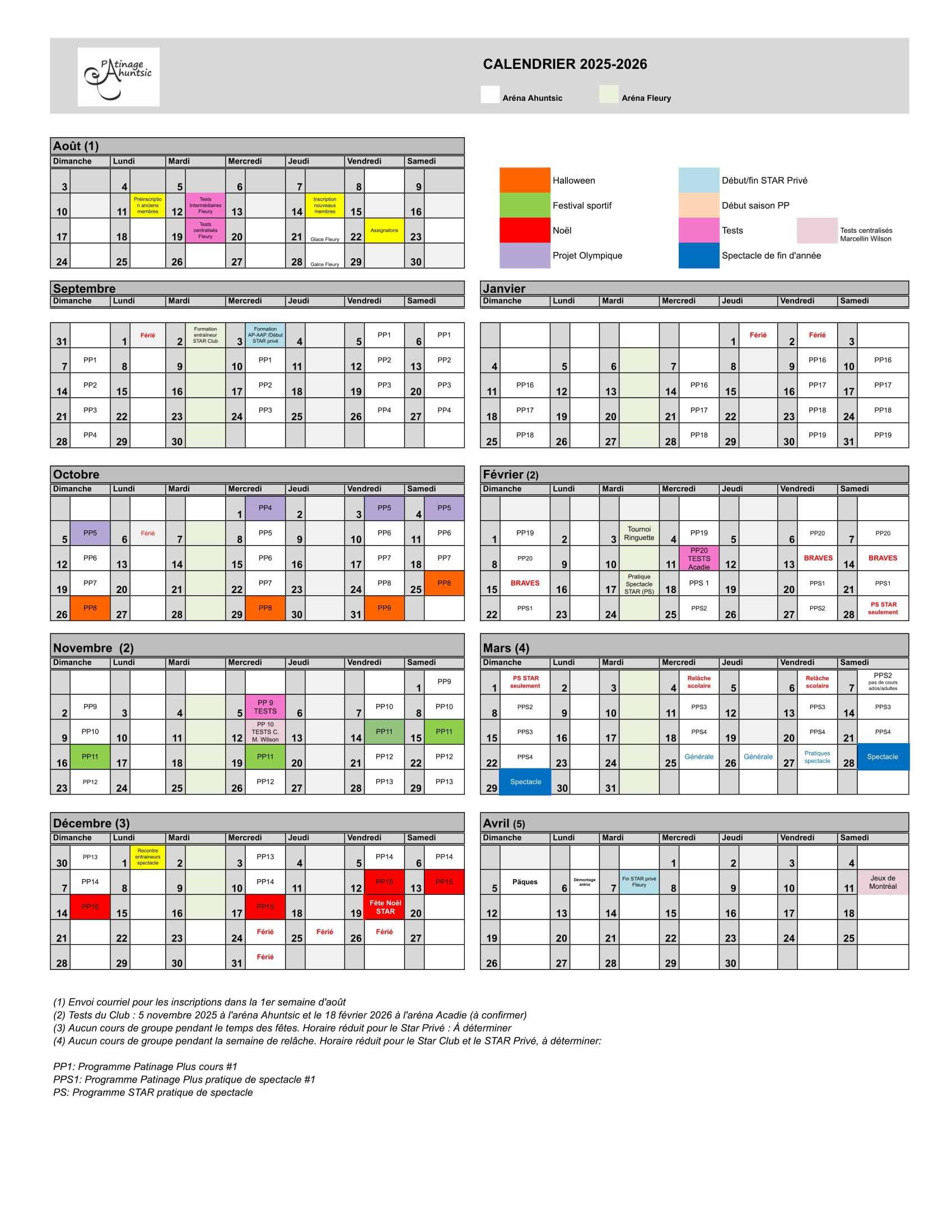 CALENDRIER PATINAGE MONTRÉAL 2025-2026