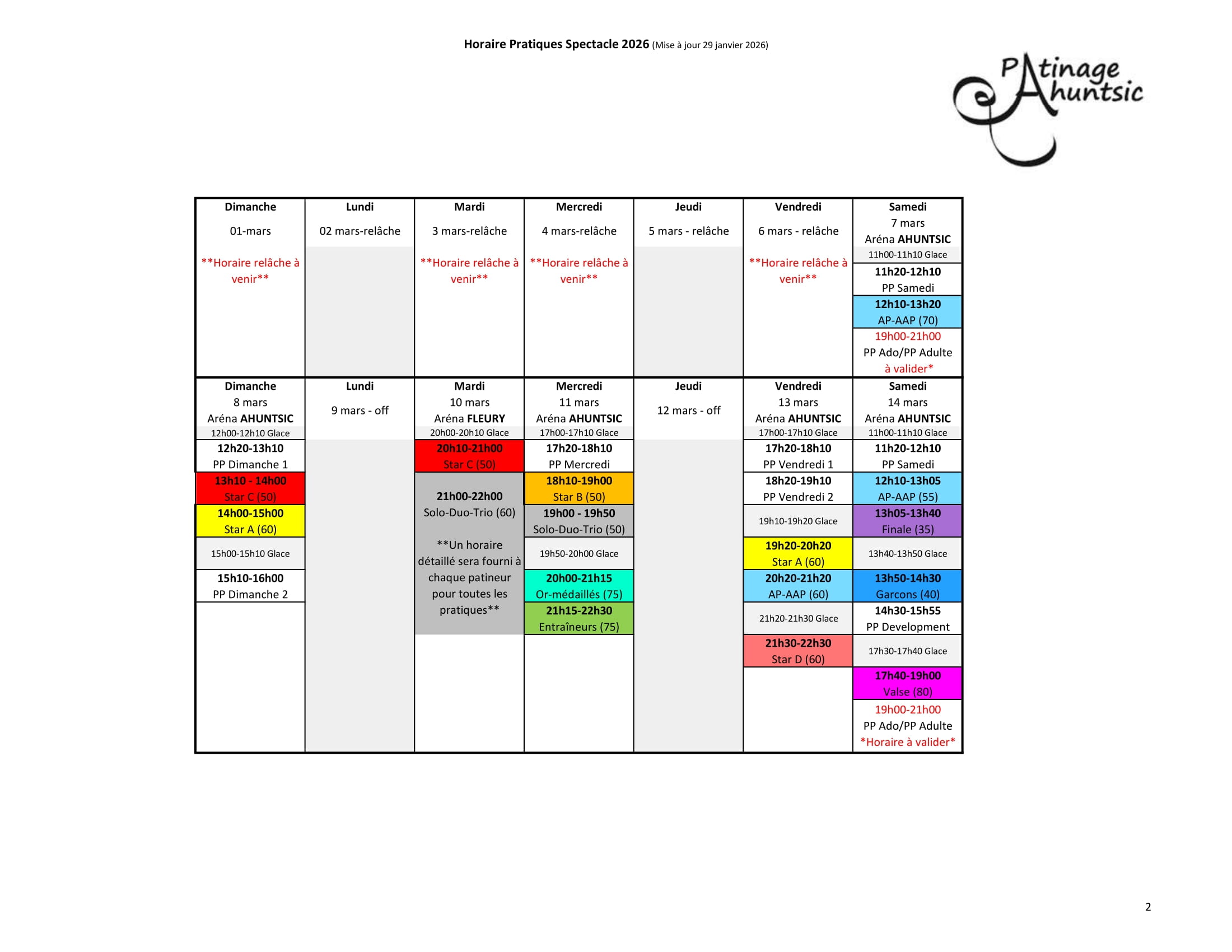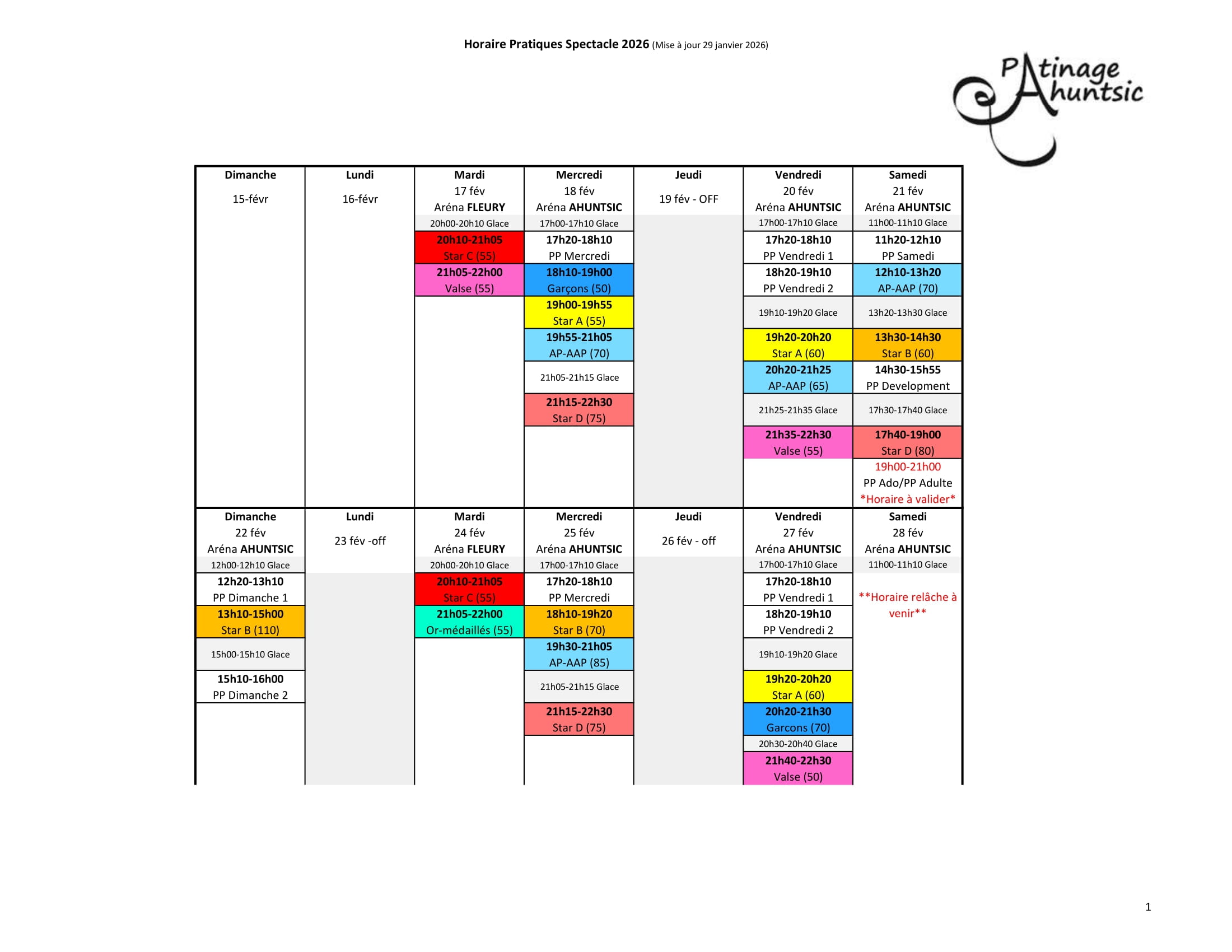 Patinage STAR / STAR Club 1@4 Horaire et coûts